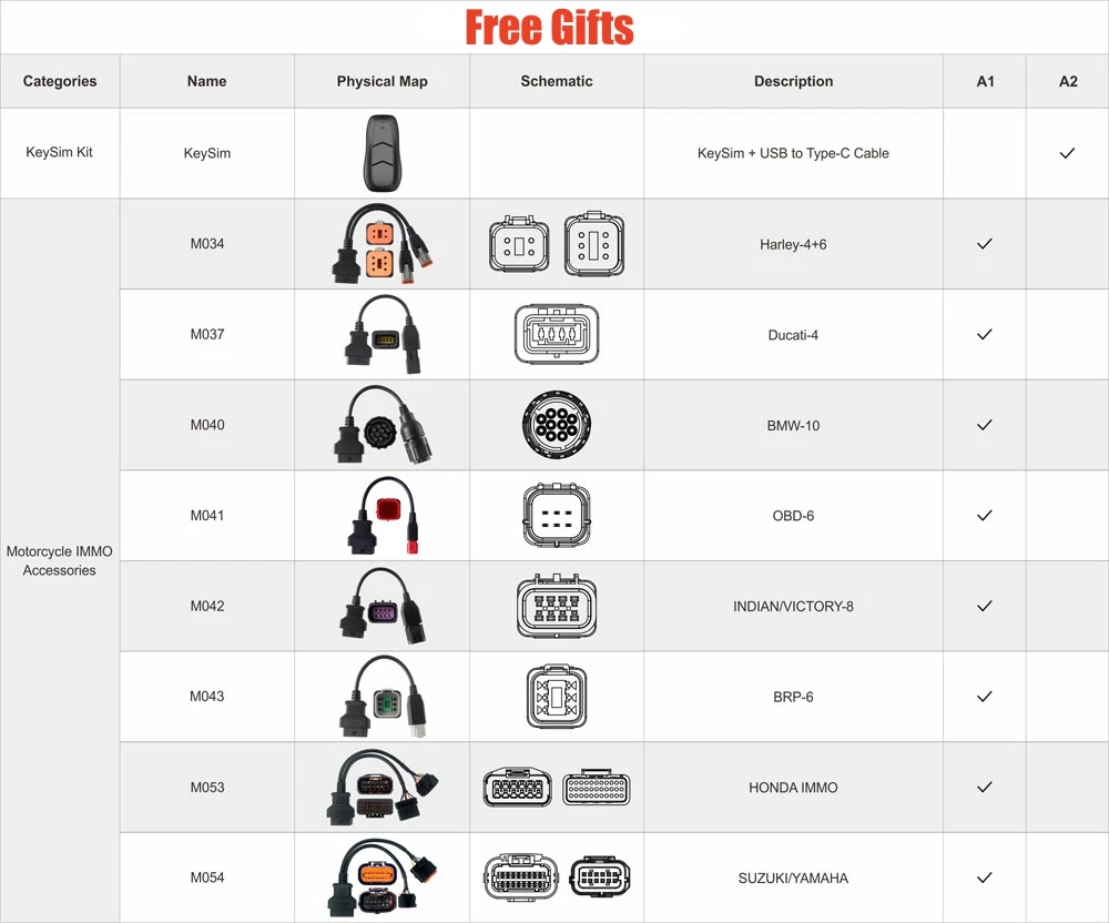 Key Sim Kit+ Motorcycle IMMO Accessories (M034, M037, M040, M041, M042, M043, M053, M054)
