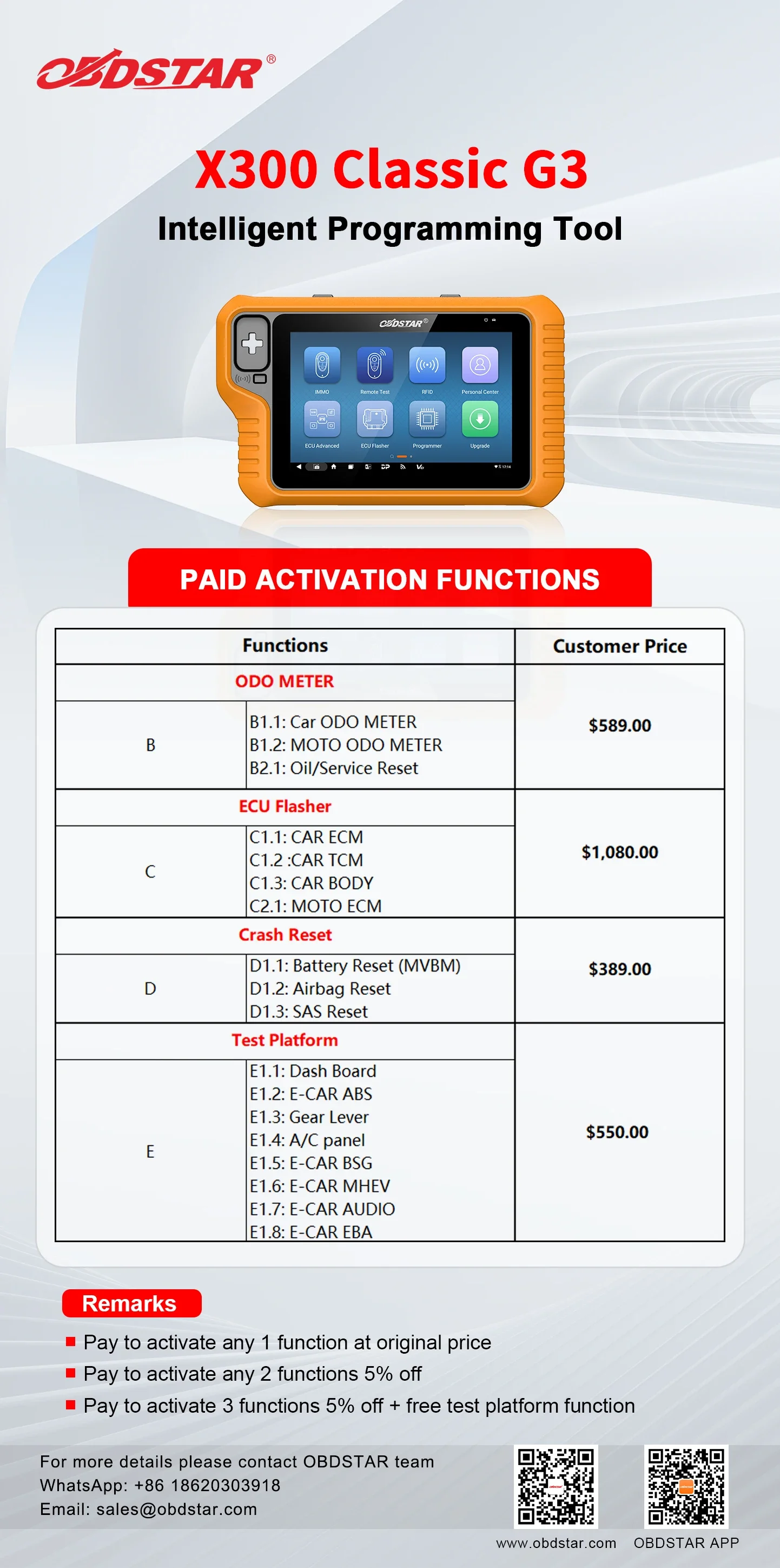 5. Paid software activation service for Cluster Calibration, ECU Flasher, Airbag Reset, Test Platform and the other functions are available.