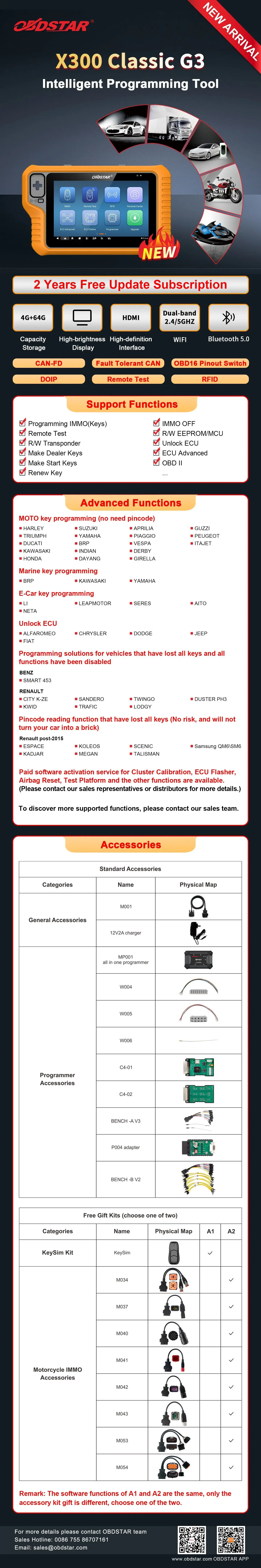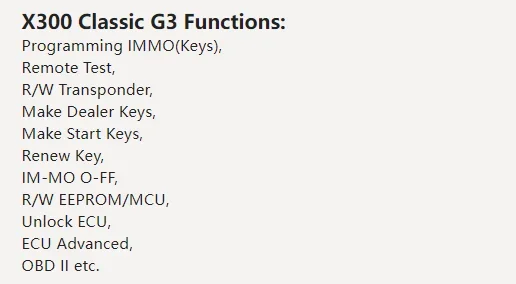 OBDSTAR X300 Classic G3 is the new generation intelligent scanner of OBDSTAR, which fully inherits the many advantages of OBDSTAR in automobile/commercial vehicle technology, such as wide coverage of car models and various functions, and comprehensively increases the programming functions of E-car, motorcycle, Jet Ski, etc. A good helper for an automotive locksmith master.